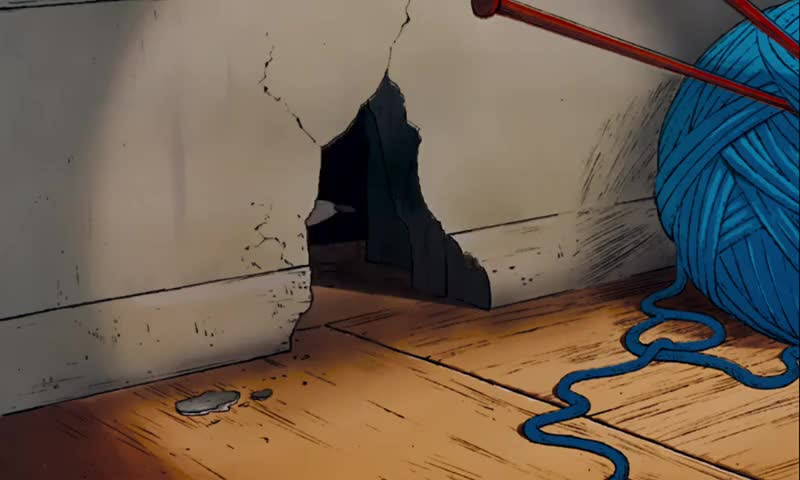 Straight away I begin aligning the wool with the punctured baseboard, closing the gap with great satisfaction at first, but start to worry that my spoolage approximation was scant. The coils stretch, revealing Swiss cheese-like perforations. The yellow light from the room spills through, casting refractions into my den and diffusing luminescently across my personal effects. Nothing has ever been more beautiful to me...peace and privacy at last.