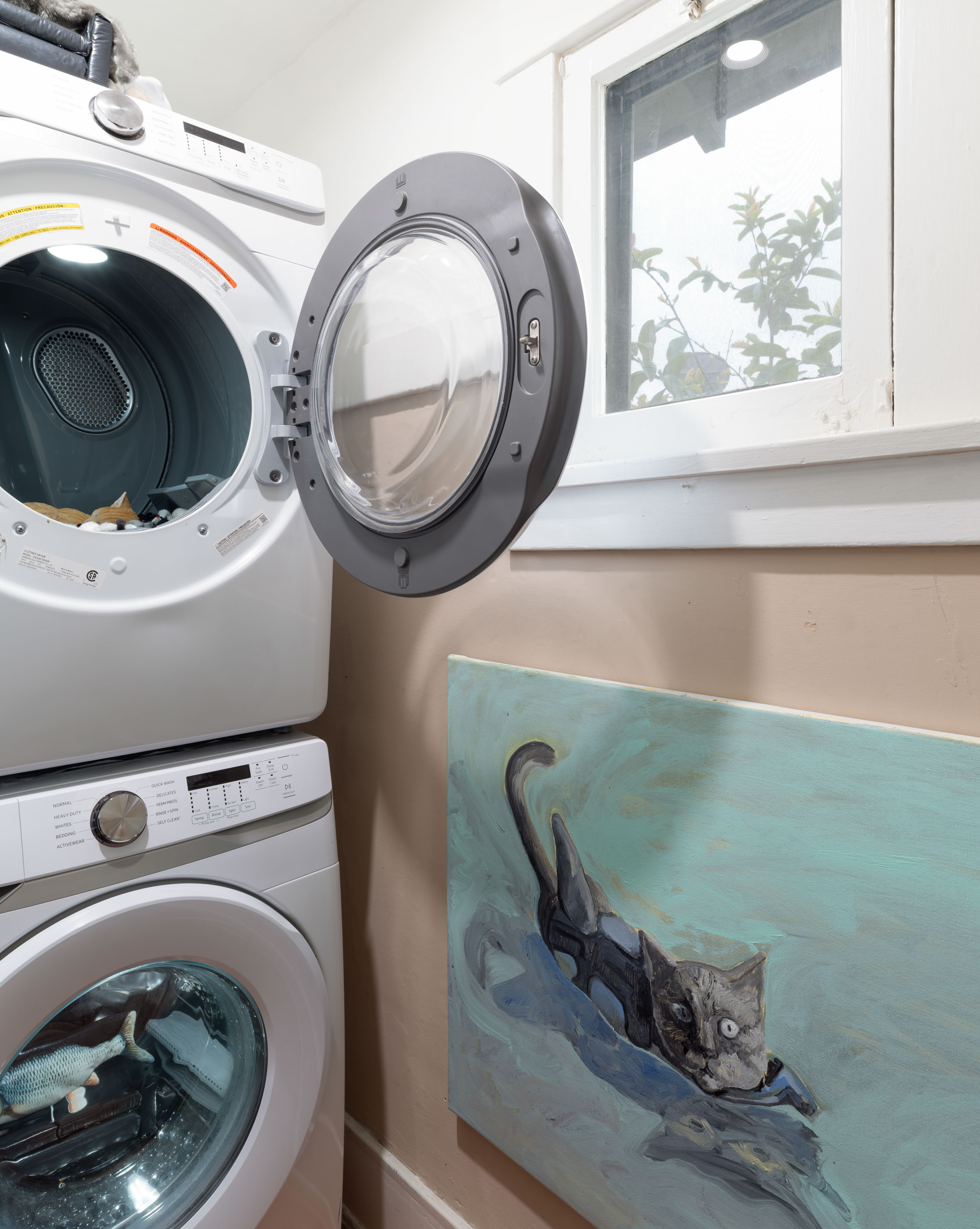 In addition to his studio work, Hinge also runs and curates two separate projects, Catbox Contemporary (Ridgewood, NY), and darkzone (NJ). Catbox Contemporary has regularly held exhibitions in and out of Hinge’s apartment since 2017, with notable external shows being held at Alyssa Davis Gallery (NY, NY), Hot Wheels Athens (Athens, Greece), Felix Art Fair (2019), and Baitball (Polignano a Amare, Italy). darkZone was started in 2019 in Hinge’s childhood’s home’s basement. The project in its original form concluded in 2022 with the sale of the house.